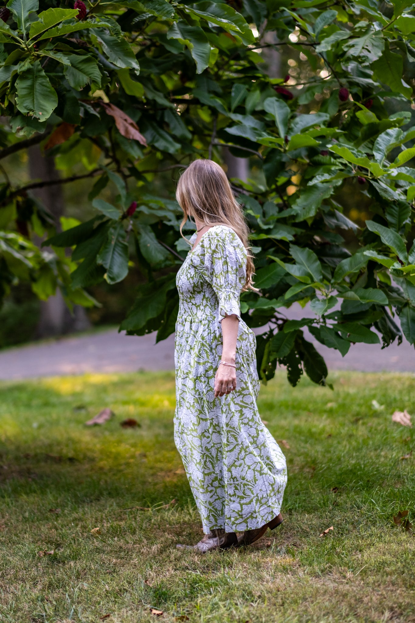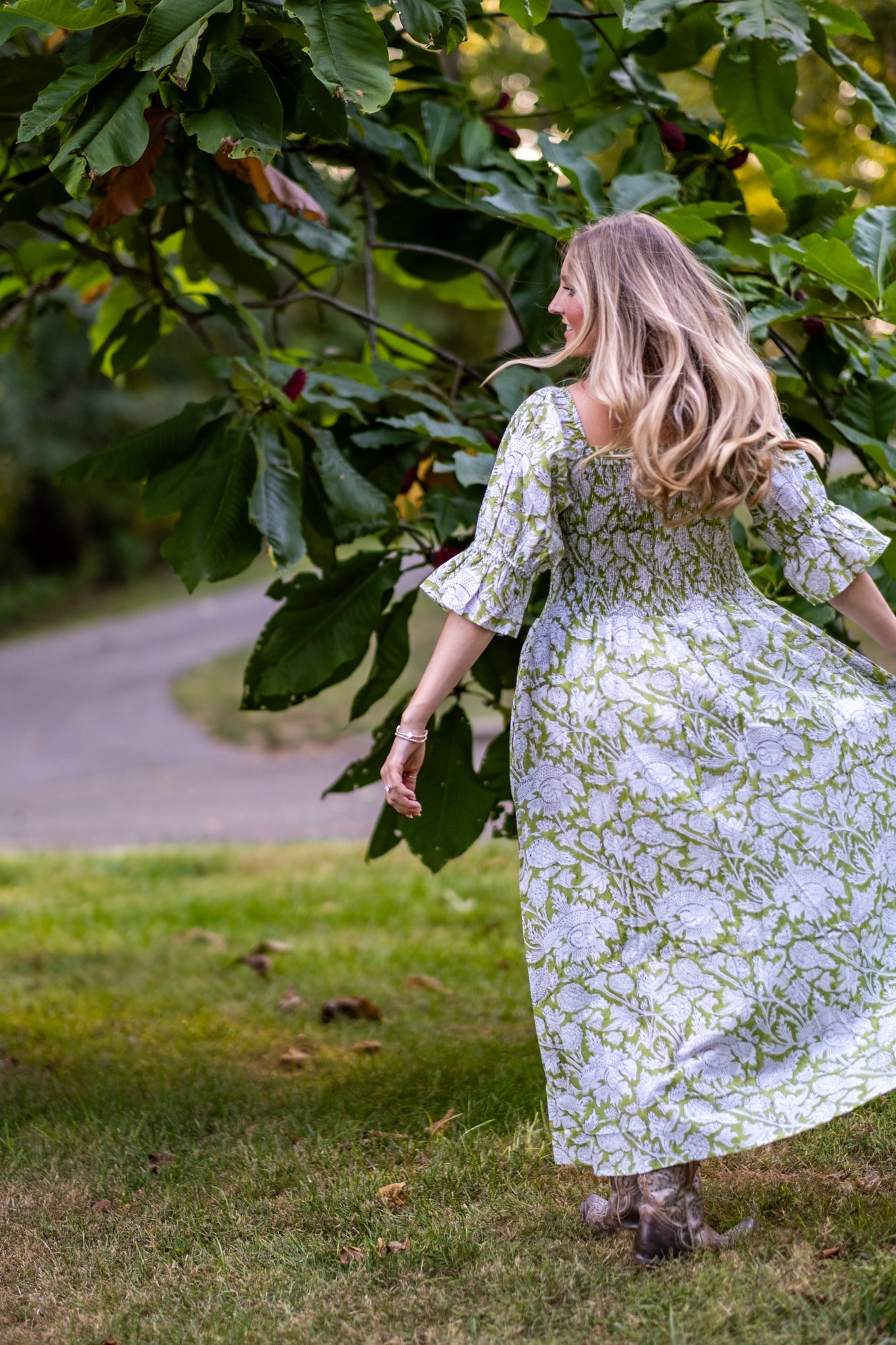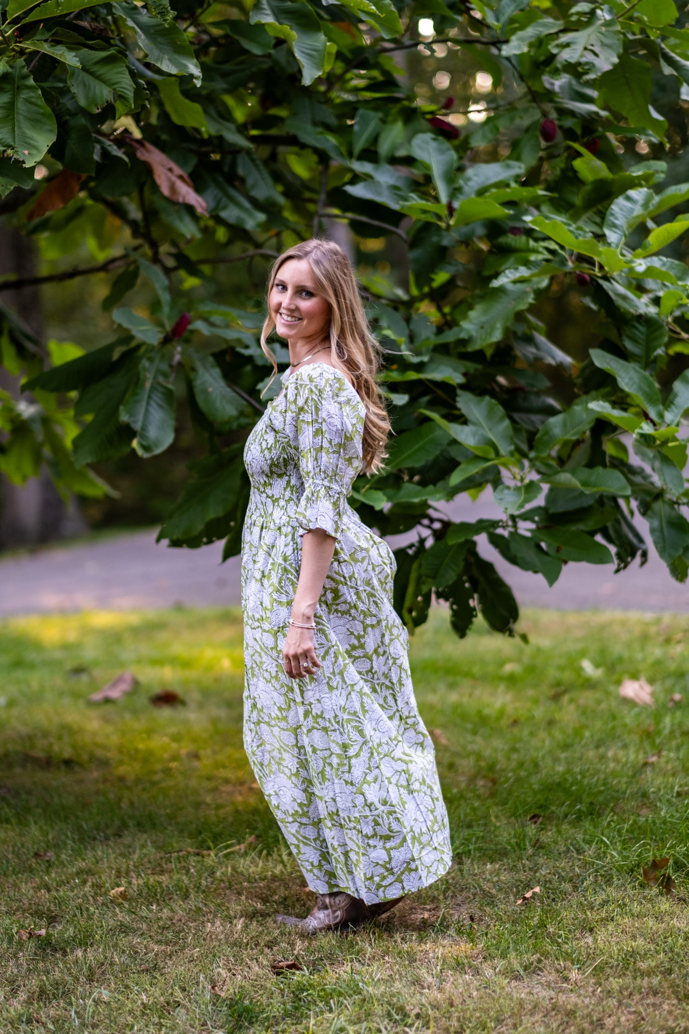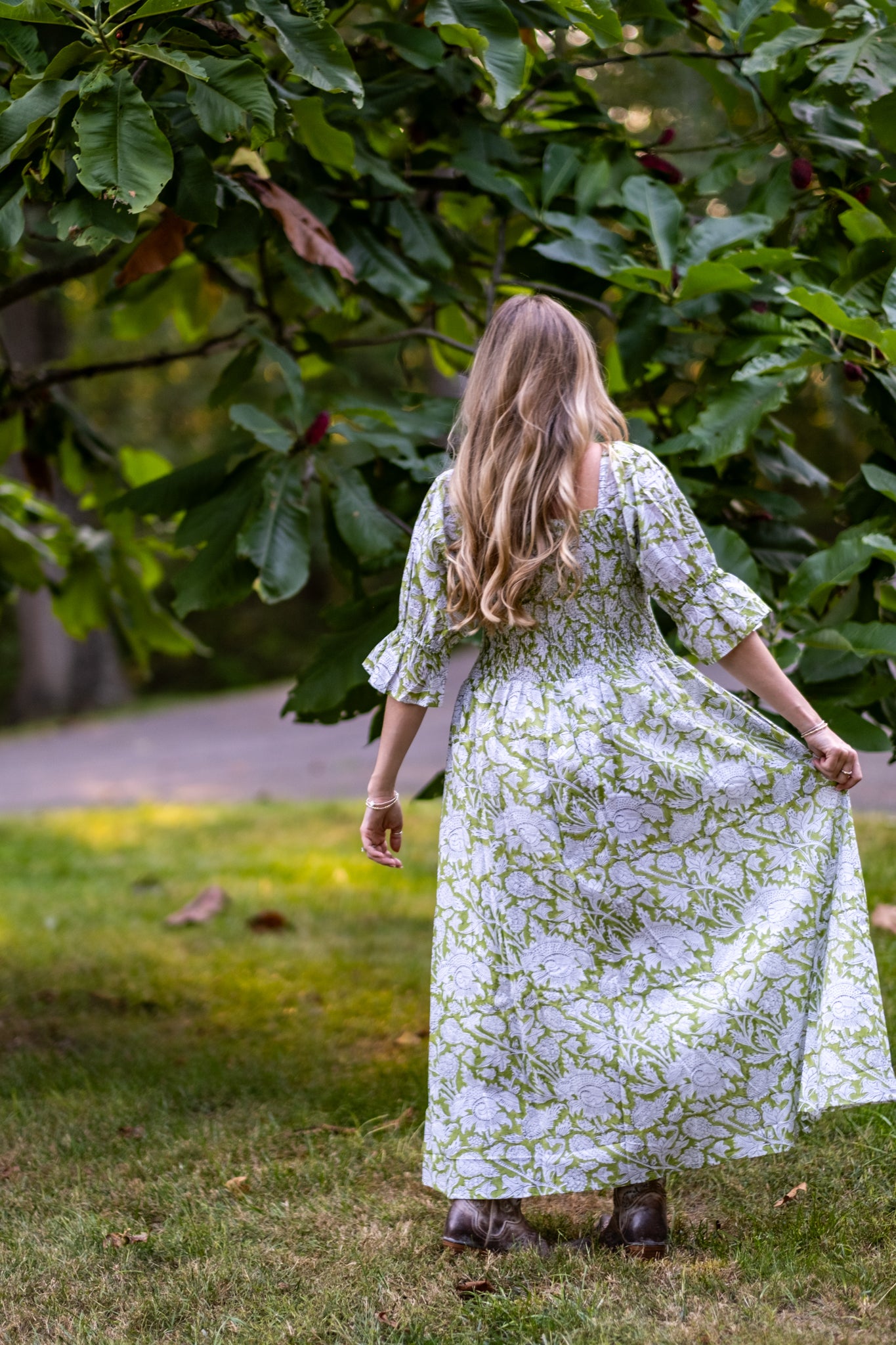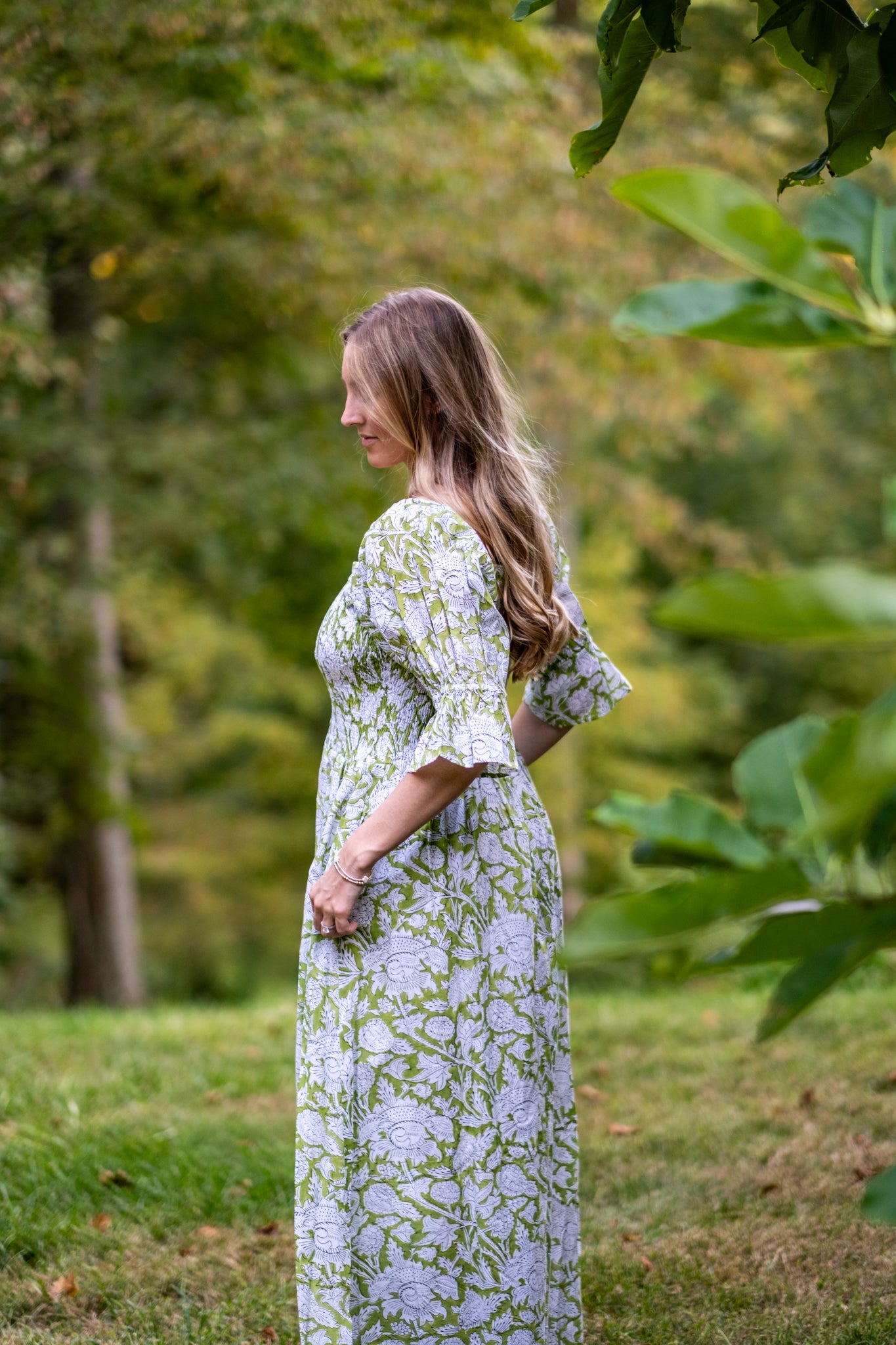 Olivia is one of our favorite dresses from the season. Twins to Rose, Olivia is a beautiful fresh light green with balloon sleeves with tapered flare at the end. Enjoy a stretchy, supportive bodice and the perfect long skirt. The dress features two deep pockets, and a soft cotton voile lining for modesty and comfort. The beautiful A line dress falls at the calves, dress it up with heels or cowboy boots and sunglasses or throw on your favorite sandals.